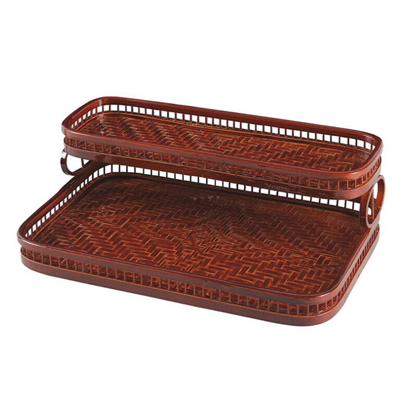 Bamboo Double Layers Rectangle Hotel Bathroom Amenities Tray