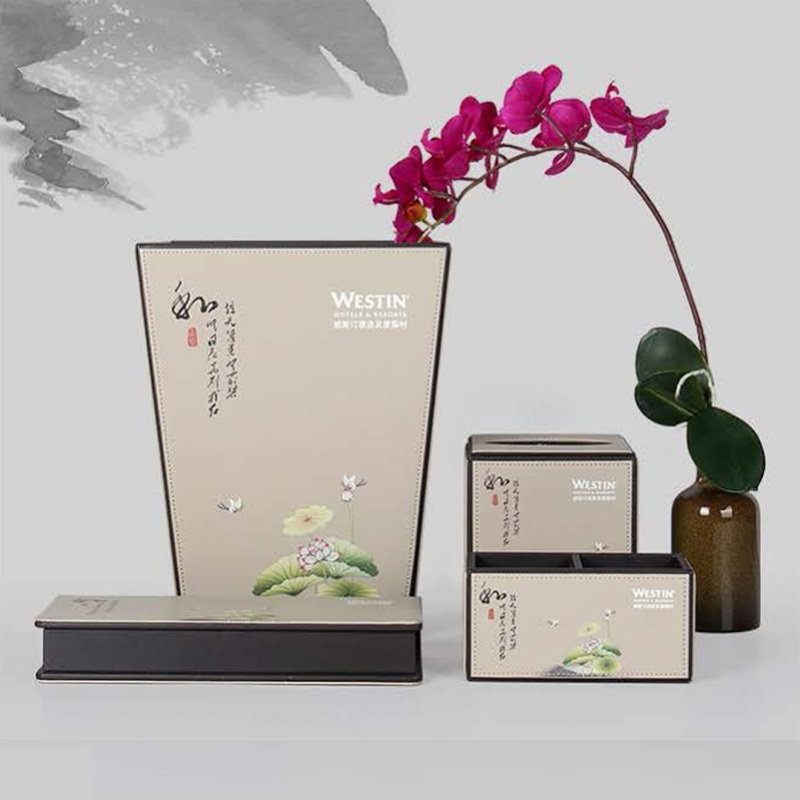 Chinese Design Elegant Gray PU Leather Set with Lotus Pattern
