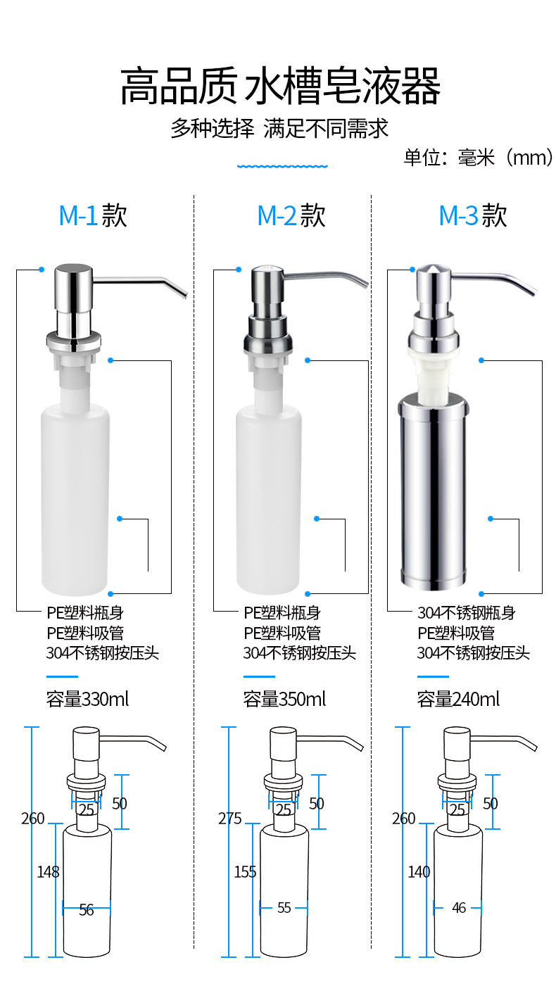 Household Kitchen Sink Soap Dispenser Kitchen Detergent Pump Bottle Dispenser Factory Price Direct Sell Hand Soap Container