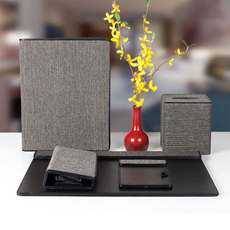 Star Hotel Business Elegang Linen Gray PU Leather Set